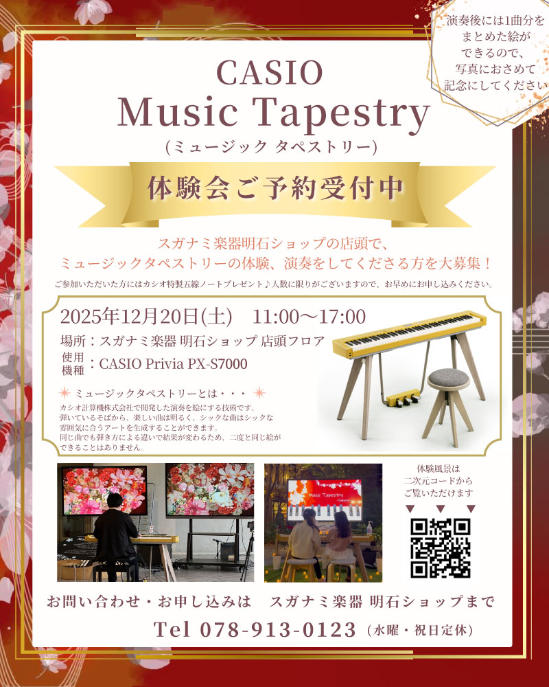 スガナミ楽器明石ショップの店頭で、ミュージックタペストリーの体験、演奏をしてくださる方を大募集!