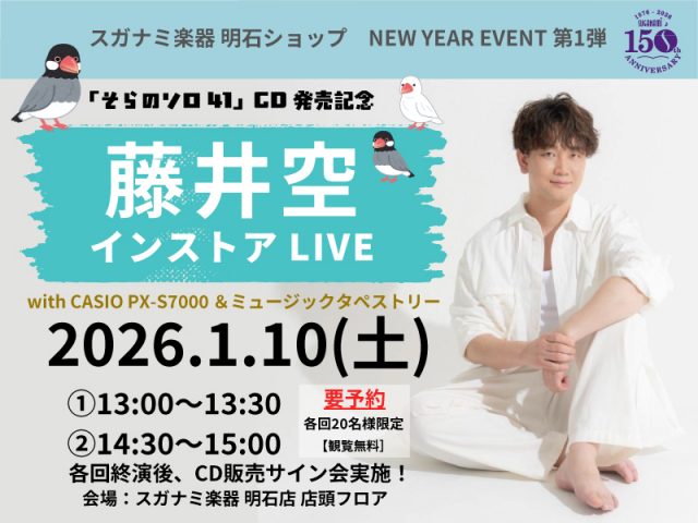 藤井空さんのCD「そらのソロ41」の発売を記念して、スガナミ楽器明石ショップにてインストアLIVEを開催!