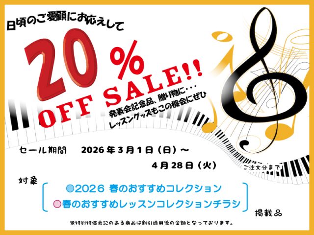 2026年春 発表会記念品・ピアノ付属品20%OFF SALE!