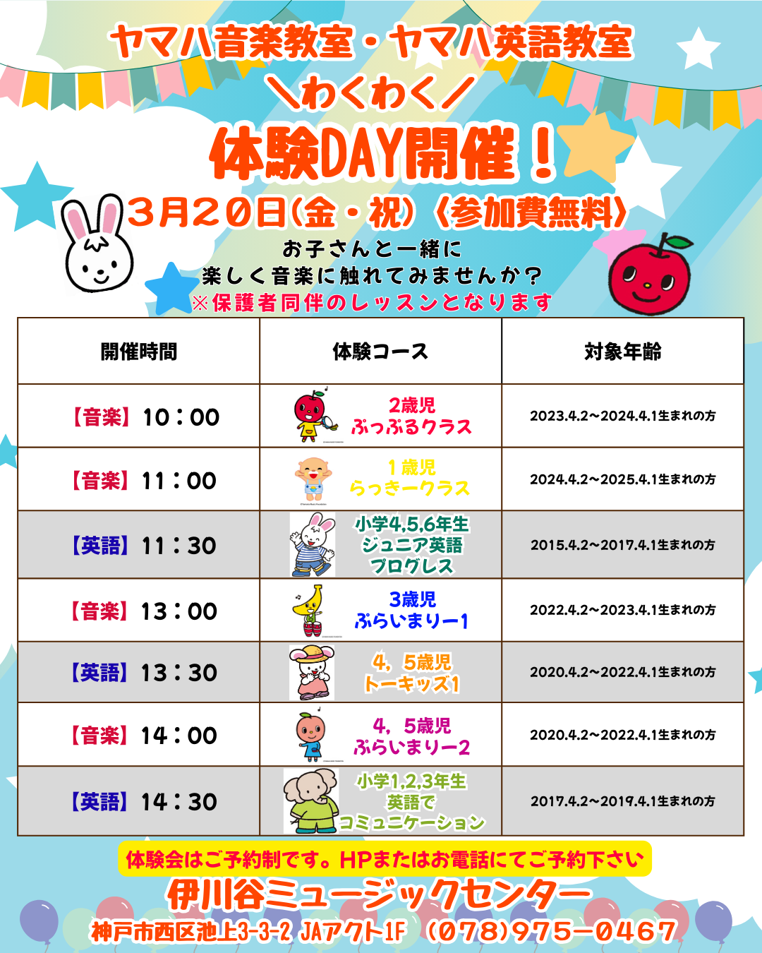 ヤマハ音楽教室・ヤマハ英語教室 わくわく体験DAY開催