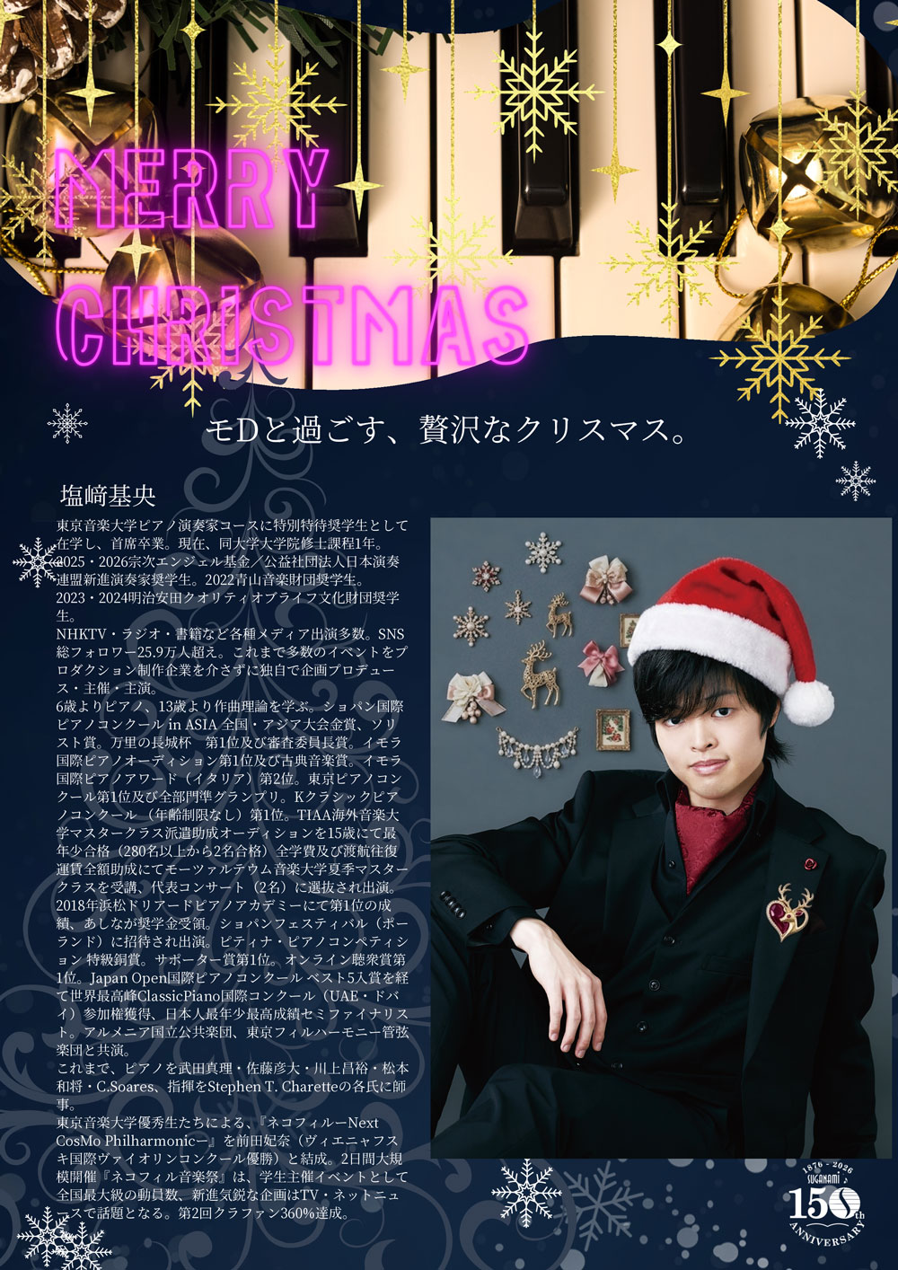 東京音楽大学ピアノ演奏家コースに特別特待奨学生として在学し、首席卒業。現在、同大学大学院修士課程1年。2025・2026宗次エンジェル基金/公益社団法人日本演奏連盟新進演奏家奨学生。2022青山音楽財団奨学生。2023・2024明治安田クオリティオブライフ文化財団奨学生。