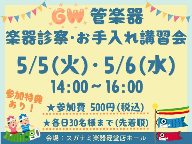 管楽器診察&管楽器お手入れ講習会 5月5日(火)・6日(水)