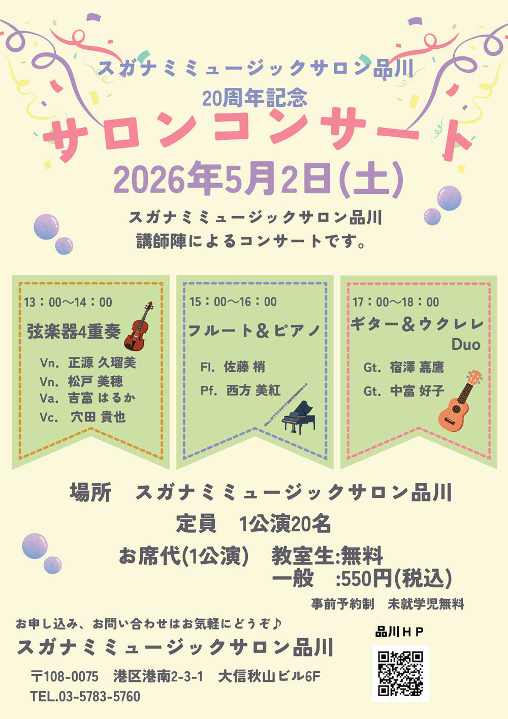スガナミミュージックサロン品川20周年記念サロンコンサート