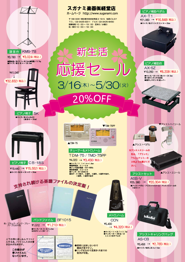 春♪ 新生活を始める方をスガナミ楽器経堂店は応援します!!ピアノを始められる方、吹奏楽部に入部しようと思っている方にぴったりなラインナップをご用意いたしました。お得なこの時期に、是非ご来店くださいませ!