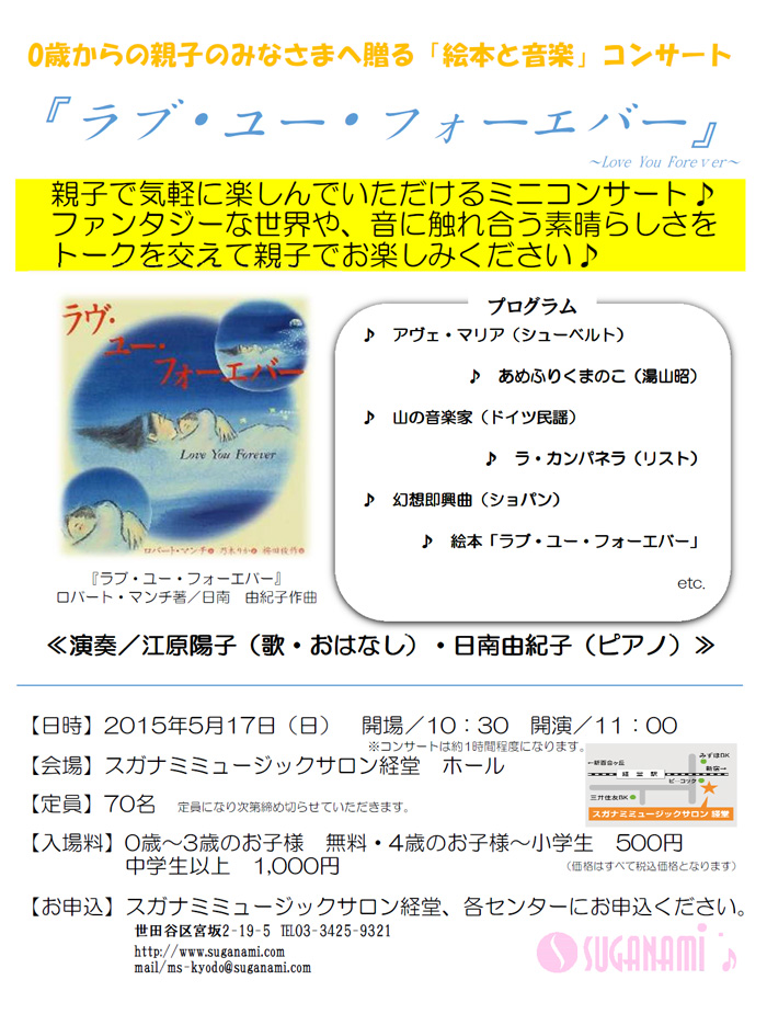 0歳からの親子のみなさまへ贈る「絵本と音楽」コンサート『ラブ・ユー・フォーエバー』