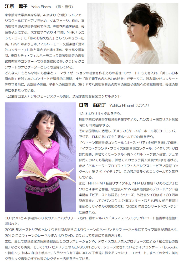ファンタジーな世界や、音に触れ合う素晴らしさを、トークを交えて親子でお楽しみください♪