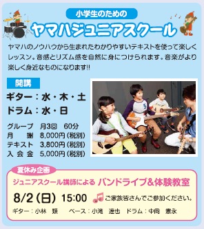 ヤマハジュニアスクール講師のバンドライブと教室を体験いただけるイベントです。