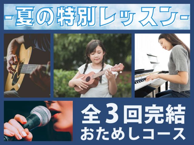 いつかは初めてみようと思っていたけどタイミングが合わなかった方、普段は違う楽器を演奏するけど別の楽器にも興味を持っている方、夏休みの短期だから気軽に参加したい方、理由は問いません。「夏特レッスン」は、はじめてさんを対象とした全3回完結のおためしコースです。