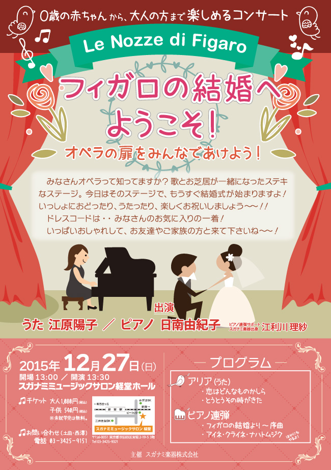 【0歳から楽しめる、うたとピアノのコンサート】フィガロの結婚へようこそ!