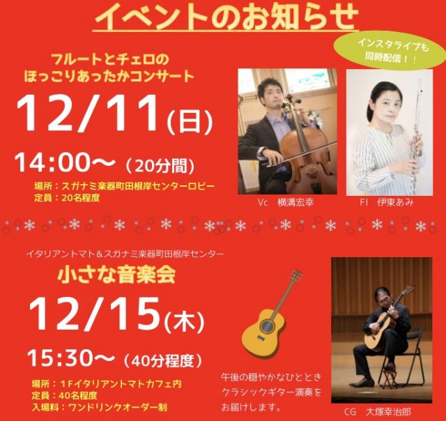12月の町田根岸センターはコンサートで盛り上がりますよ~!