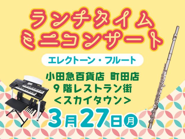 小田急百貨店 町田店9階のレストラン街<スカイタウン>でランチタイムコンサートを2月に引き続き3月も行います。