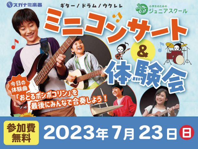 小学生からはじめる ギター・ドラム・ウクレレ夏の楽器体験会2023