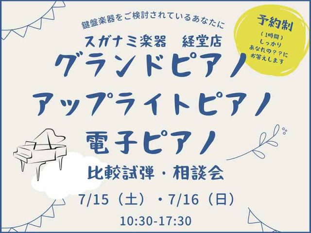 グランドピアノ・アップライトピアノ・電子ピアノ比較試弾相談会