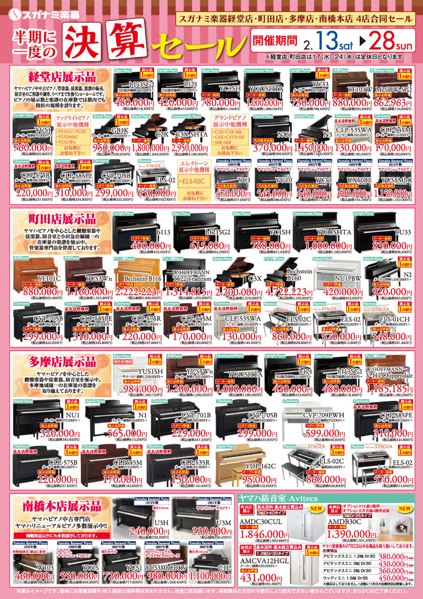 半期に一度の決算セール:ピアノ・電子ピアノ・エレクトーン・中古ピアノ・防音室