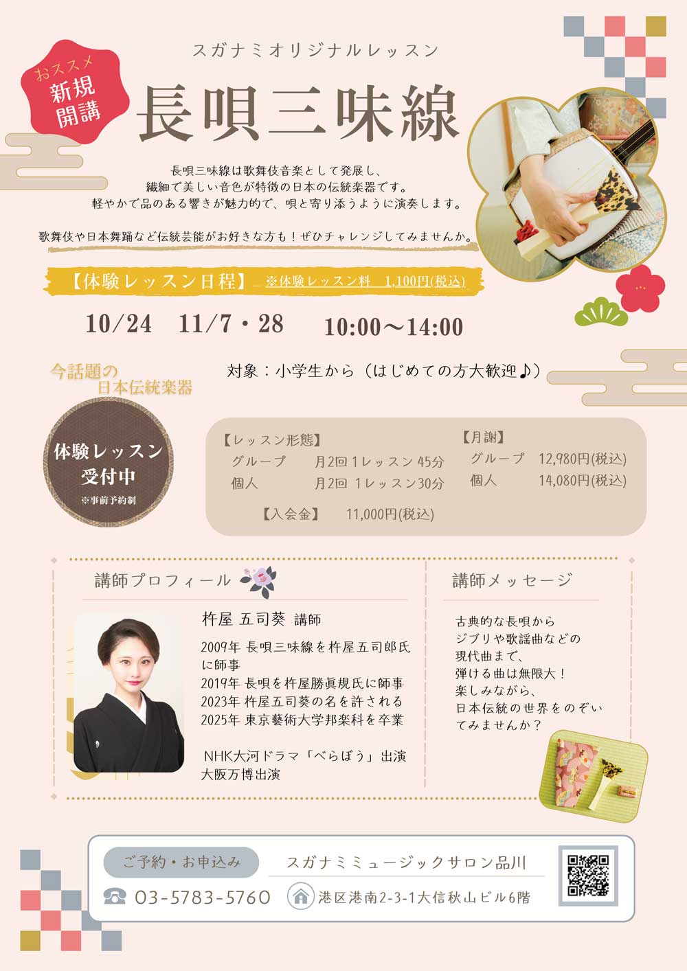 「長唄三味線コース」新規開講、体験レッスン開催!!