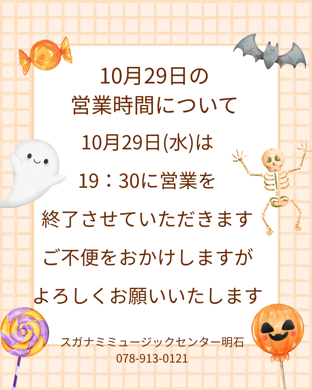 2025-10-28 update 10月29日(水)の営業時間について 10月29日(水)は19:30に営業を終了させていただきます ご不便をおかけしますがよろしくお願いいたします スガナミミュージックセンター明石 078-913-0121 前へ 1 2 3 4 5 6 7 次へ
