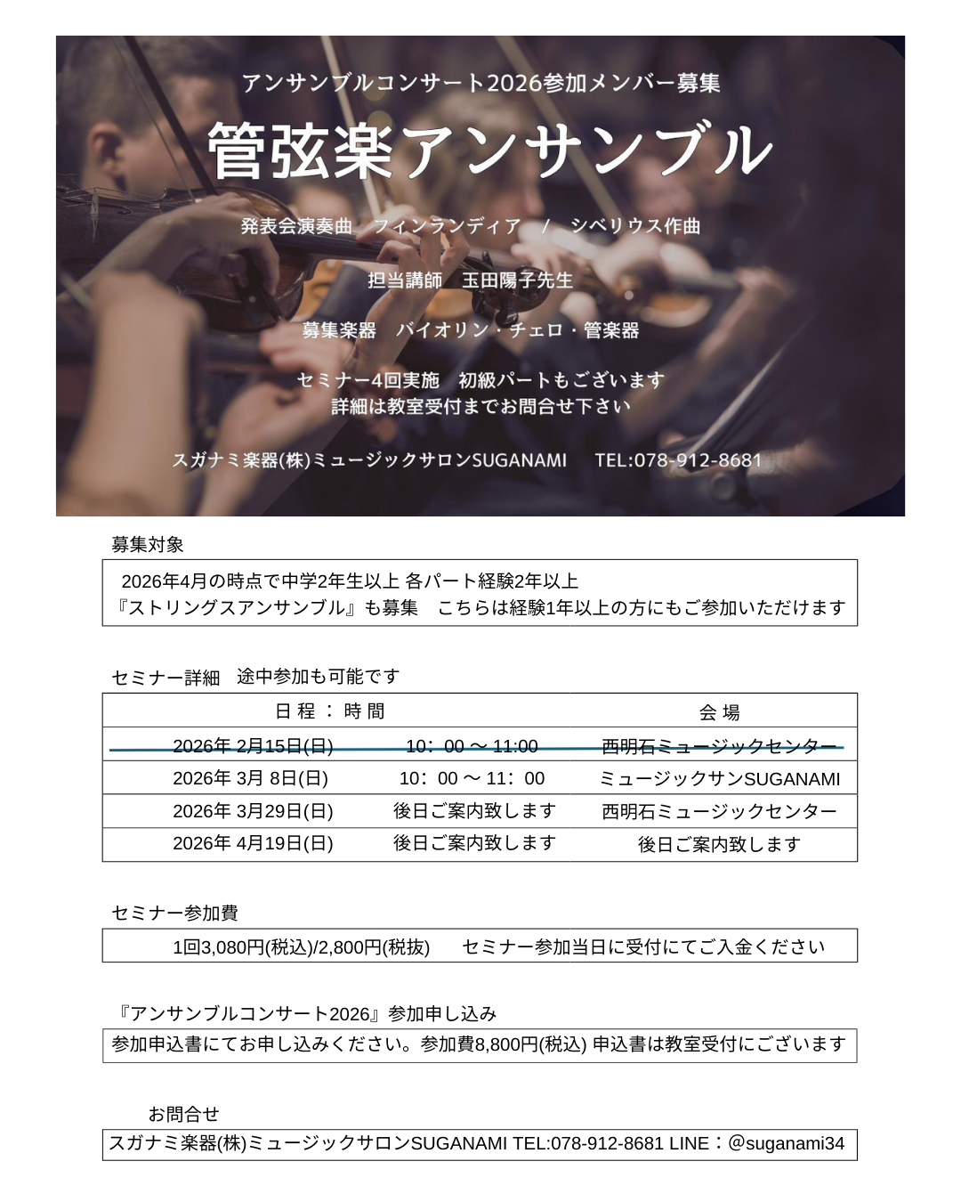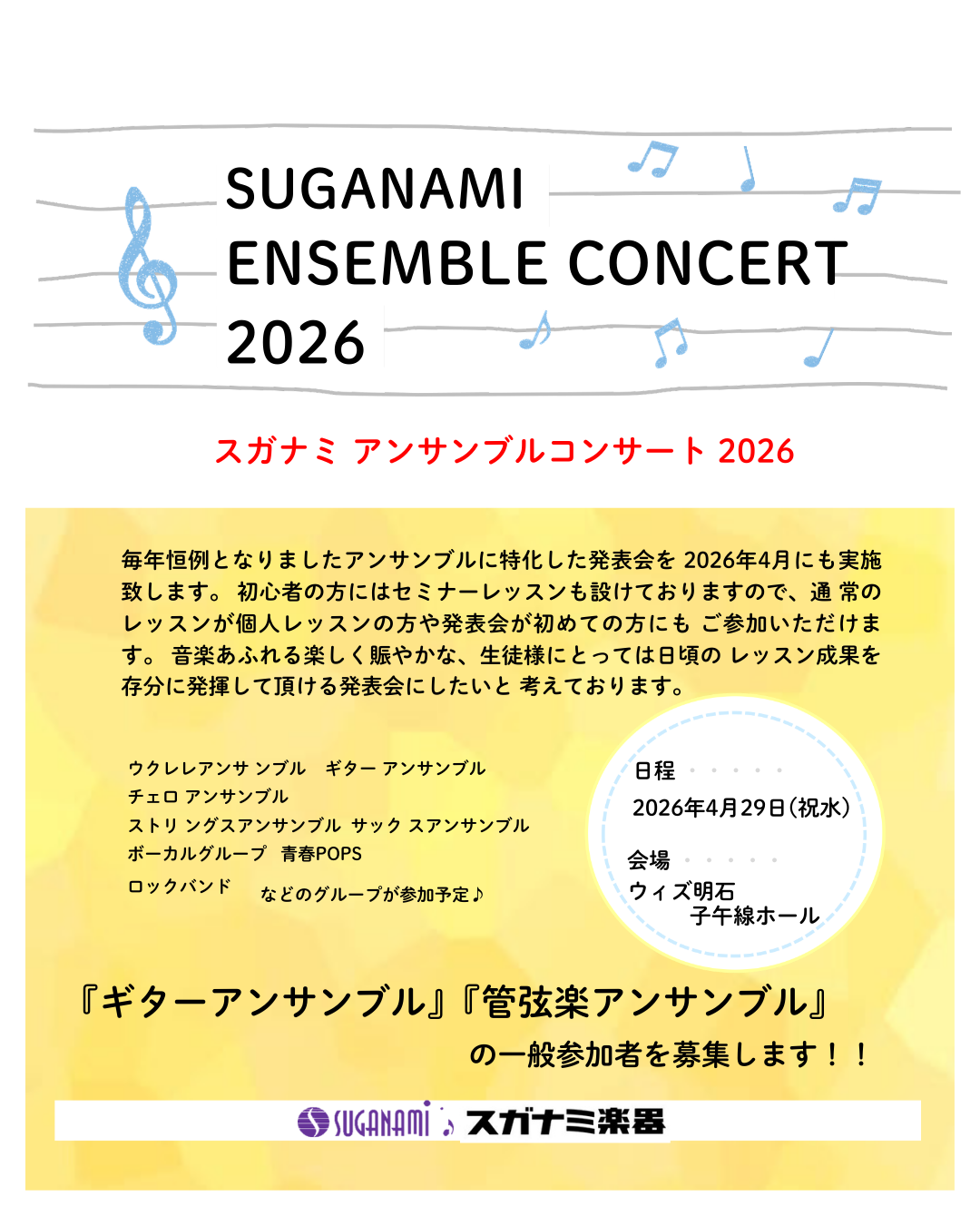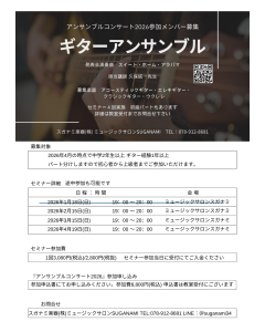 詳細や申し込みは、ミュージックサロンSUGANAMIまでお気軽にお問い合わせください