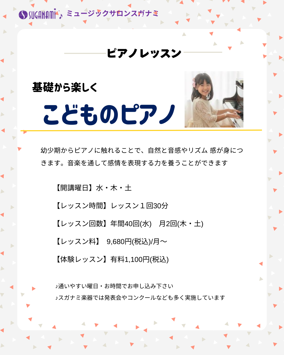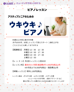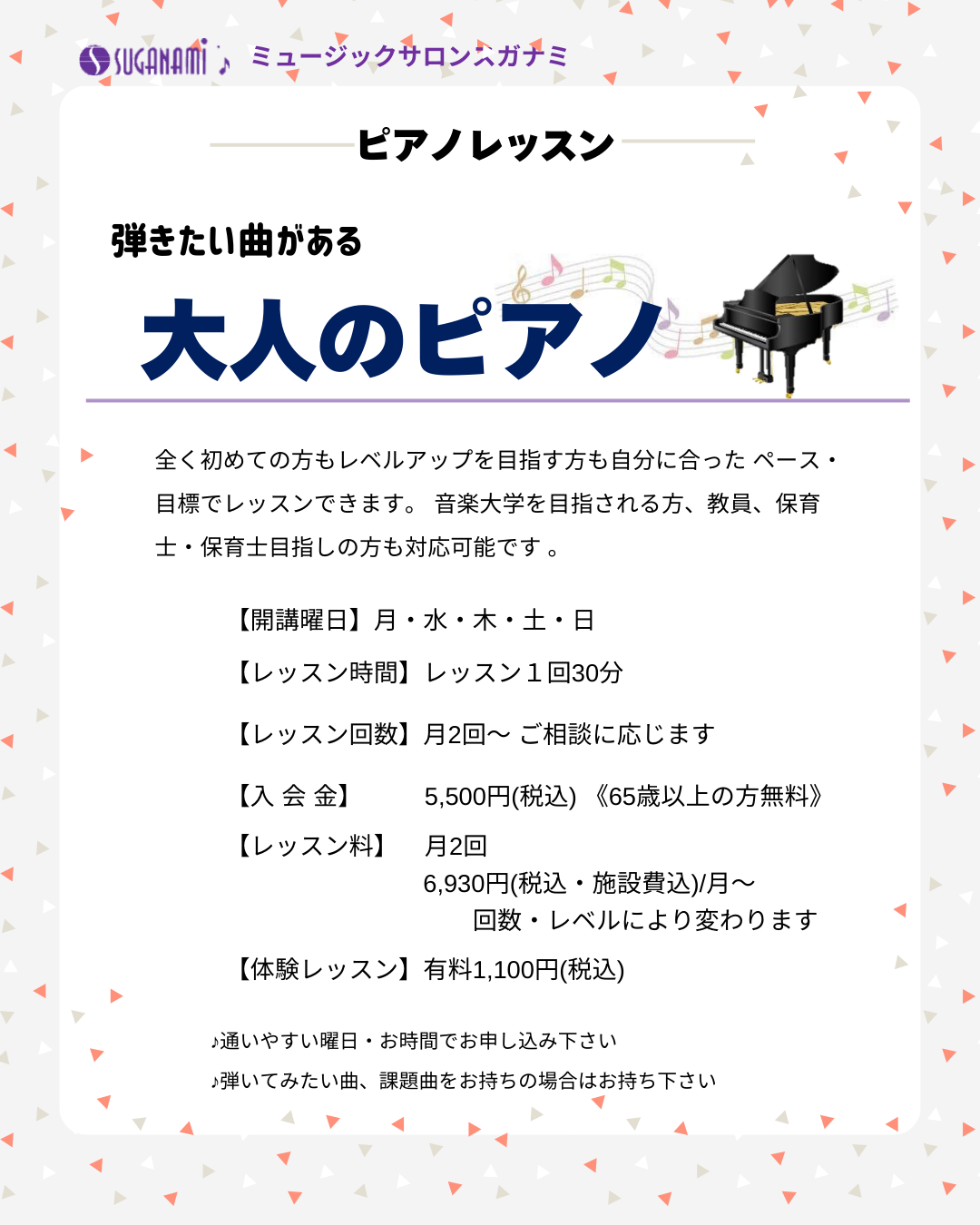 ミュージックサロンSUGANAMIでは、幅広い世代の方に楽しんでいただけるよう、多彩なコースをご用意しています