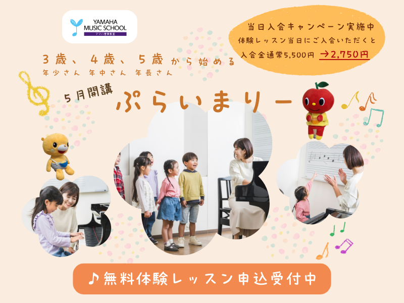3歳、4歳、5歳から始めるぷらいまりー 5月開講です。お急ぎください!!
