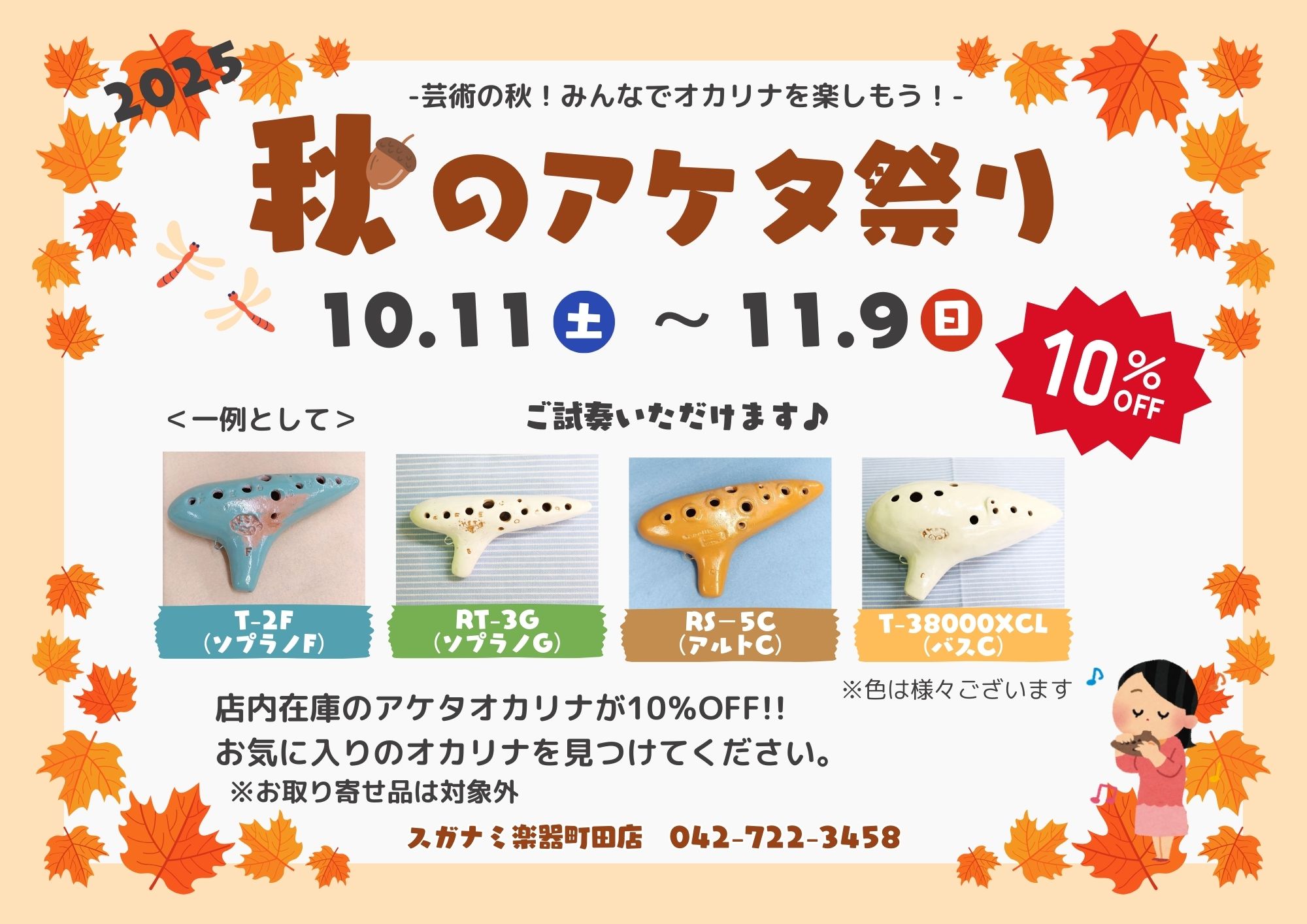 店内在庫のアケタオカリナが全品10%OFF!!