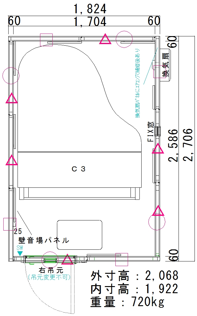 ヤマハ中古防音室 3.0畳 Dr40 経堂店 No.7417 アビテックスミニAMA4030HFR