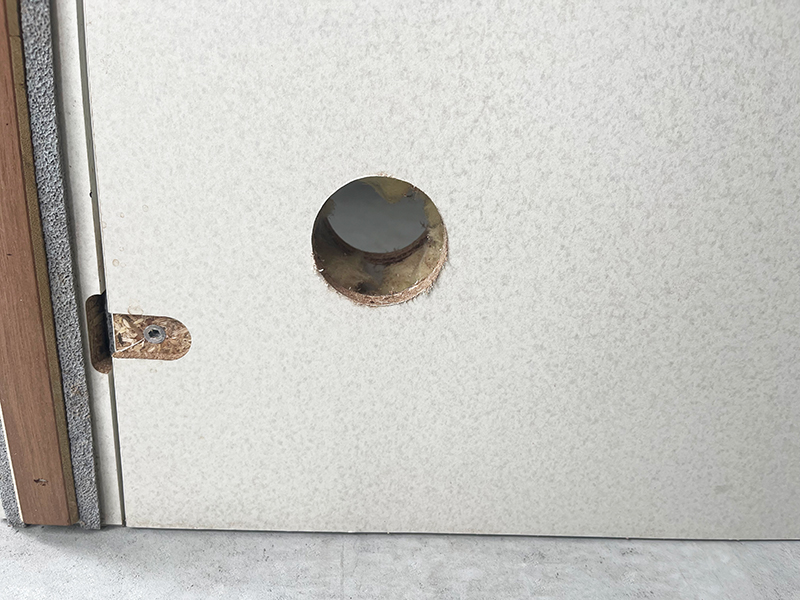 LANケーブルやコード類を防音室内へ入れる為に穴をあけました。