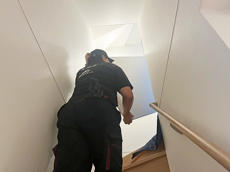 戸建3階、階段作業で搬入。限られた階段スペースでございましたので事前に下見を実施しました。